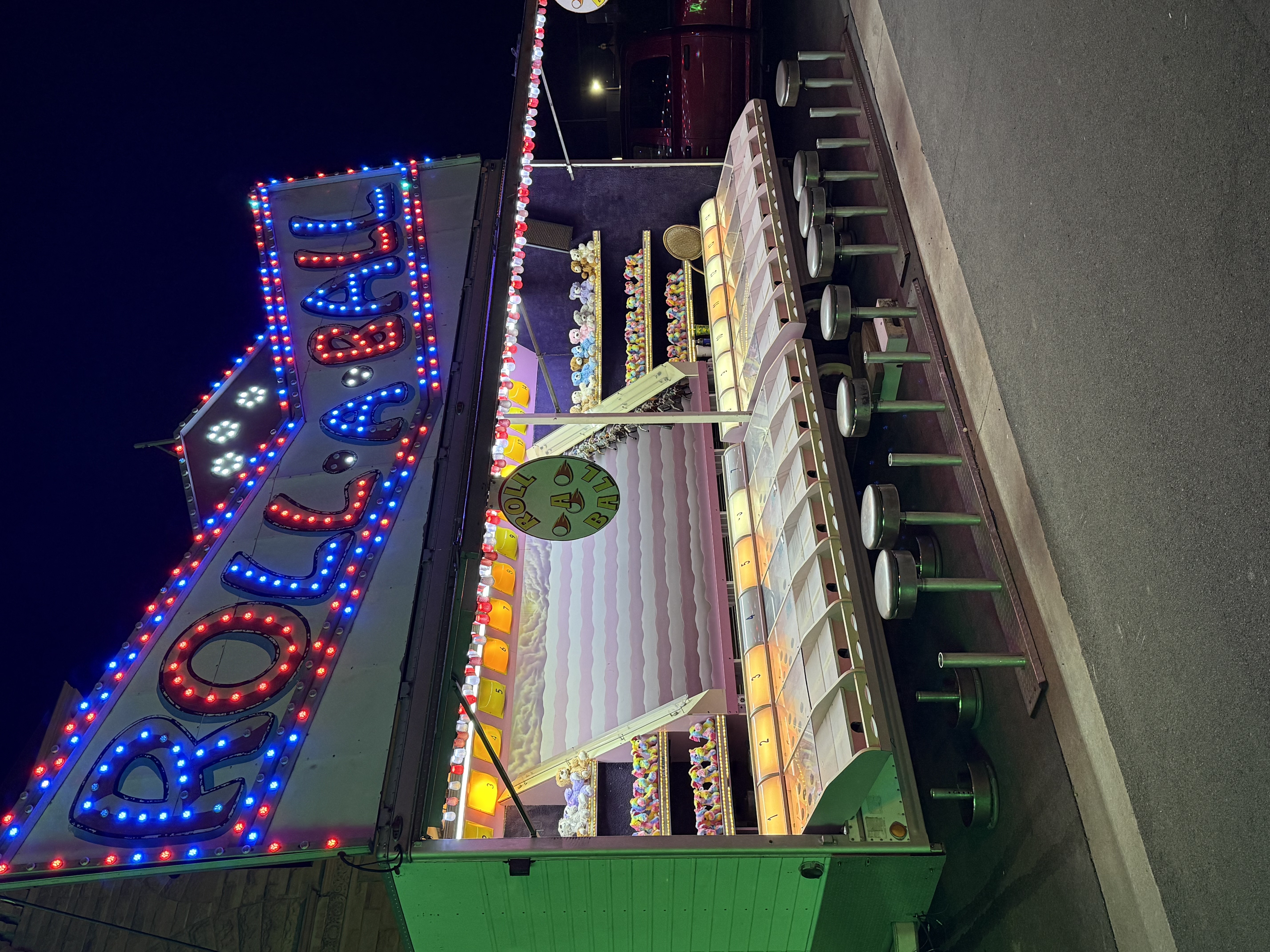 Our wheel is a full sized Ferris Wheel. It has a traditional feel, typical of festivals, street fairs, and county fairs. The ferris wheel stands at 40 ft tall and has 12 seats.